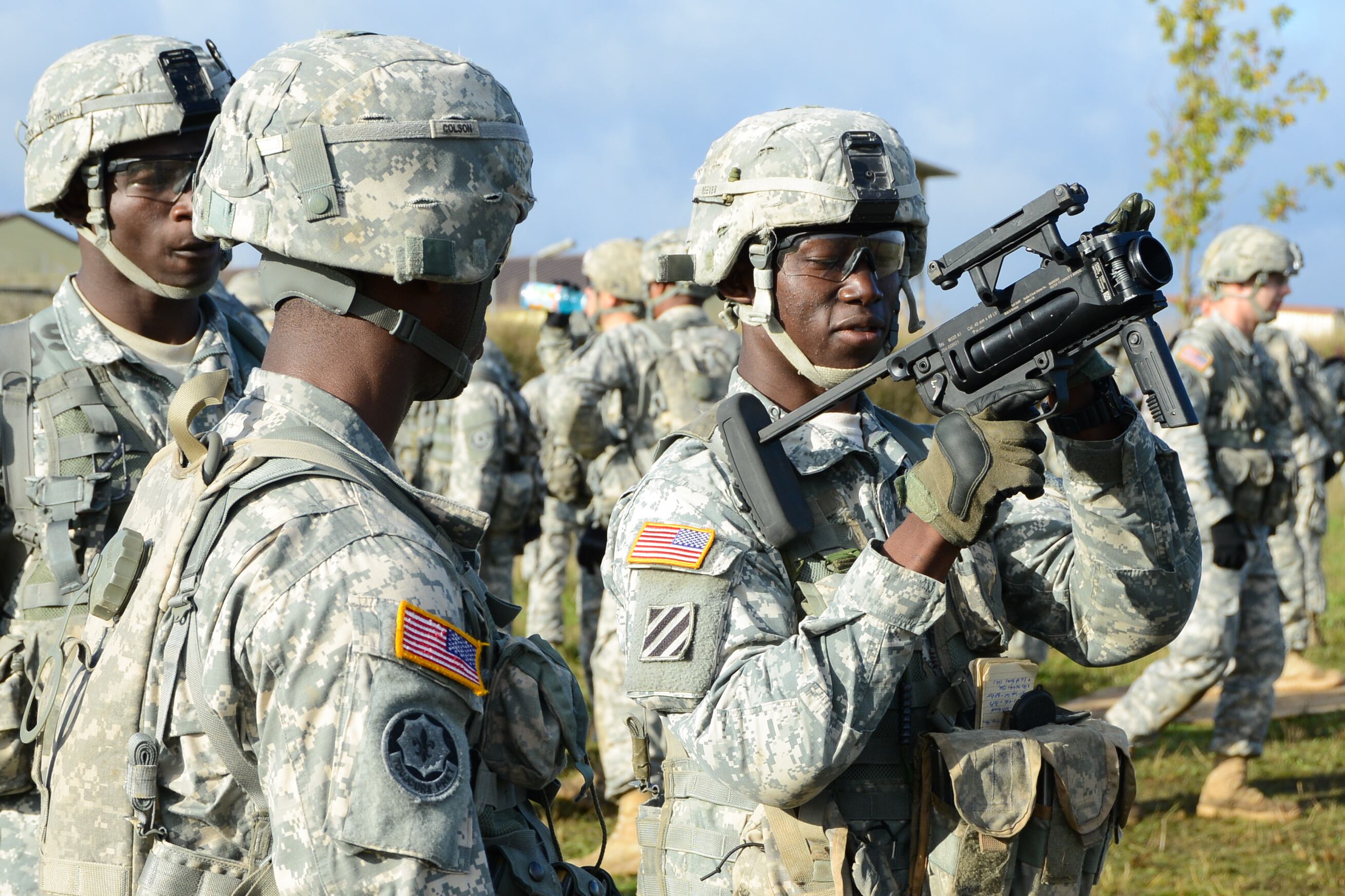 U.S. Army Spc. Anthony Buono, an explosive ordnance disposal technician with the 787th Ordnance Company, 3rd Ordnance Battalion, uses a remote control device to detonate expired and unserviceable explosives Oct. 15, 2014, near Kandahar Airfield, Afghanistan. (U.S. Army National Guard photo by Staff Sgt. Whitney Houston/Released)Cpl. Andrew J. Citriniti, a military policeman with the 11th Marine Expeditionary Unit (MEU), and Sauquoit, New York native, practices close quarter tactics aboard the USS Makin Island (LHD 8), Oct. 11. The Makin Island Amphibious Ready Group (ARG) and the embarked 11th MEU are deployed in support of maritime security operations and theater security cooperation efforts in the U.S. 5th Fleet area of responsibility.