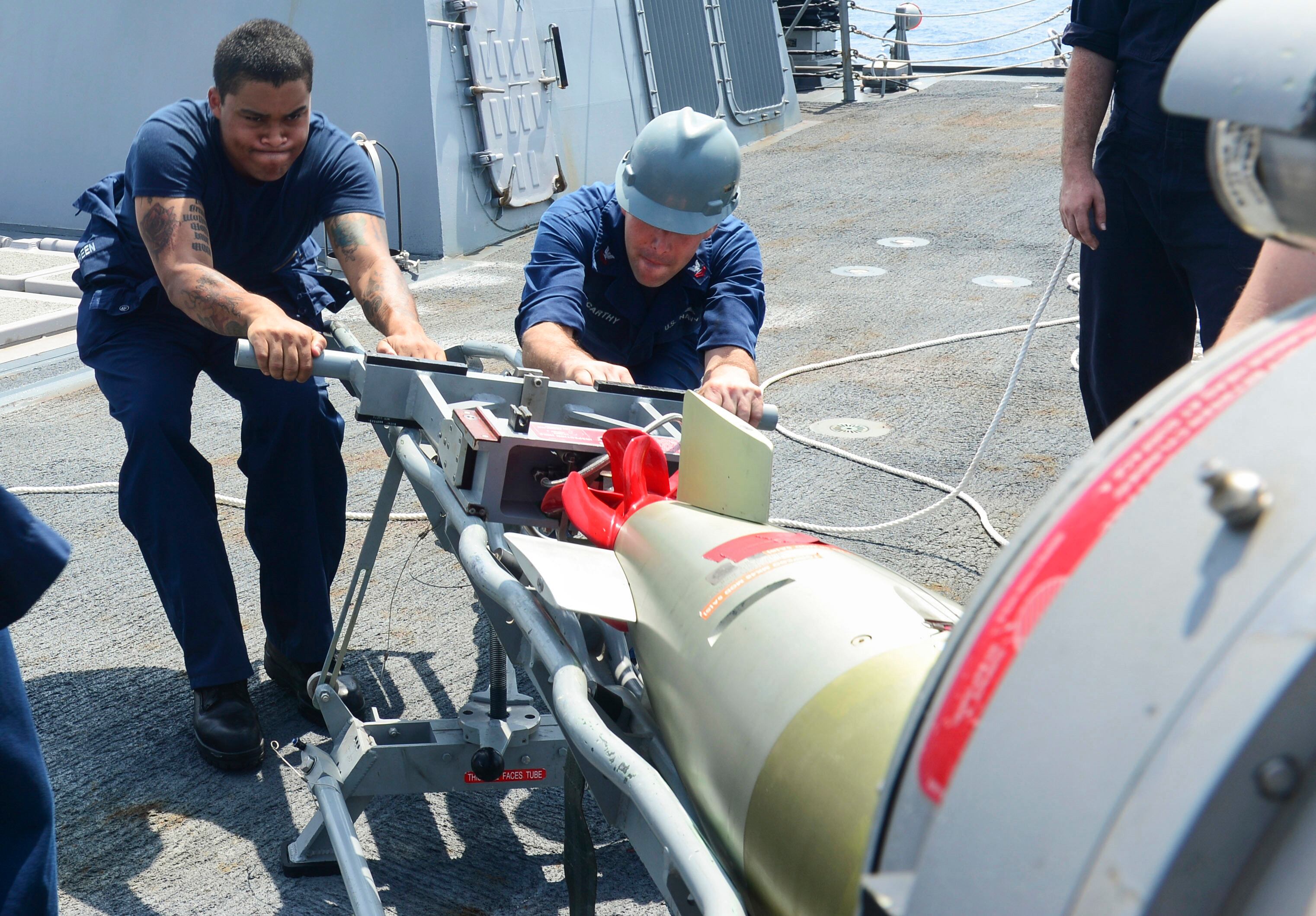 In this Wednesday, Oct. 15, 2014 photo, sonar technicians Jordan Green, left, from San Diego, and Darby McCarthy, from Merritt Island, Fla., load a torpedo aboard the guided-missile destroyer USS Sterett, currently deployed supporting strike operations in Iraq and Syria, a campaign formally named "Operation Inherent Resolve." U.S. Secretary of State John Kerry said Monday, Oct. 20, 2014, the Obama administration decided to airdrop weapons and ammunitions to "valiant" Kurds fighting Islamic State extremists in the Syrian border town of Kobani because it would be "irresponsible" and "morally very difficult" not to support them. The airdrops were the first of their kind and followed weeks of U.S. and coalition airstrikes in and near the town not far from the Turkish border. (AP Photo/U.S. Navy, Eric Coffer)Soldiers from the 35th Theater Tactical Signal Brigade pack their gear as they prepare for deployment to west Africa to aid against the spread of the Ebola virus in Fort Gordon, Ga., Monday, Oct. 20, 2014. (AP Photo/The Augusta Chronicle, Michael Holahan)A U.S. Soldier assigned to the 2nd Cavalry Regiment unloads and clears an M320 grenade launcher while participating in the Expert Infantryman Badge qualification Oct. 16, 2014, at the Grafenwoehr Training Area in Germany. The badge was presented to infantry and special forces Soldiers who completed a series of tasks measuring proficiency in physical fitness, marksmanship, navigation and tactical skills. (U.S. Army photo by Pfc. Nathanael Mercado/Released)A mother and child peer at the names inscribed on the traveling ÒWall That HealsÓ in Fort Mill, S.C., Oct. 19, 2014. About 8,000 people visited the memorial, which includes the names of 11 service members from Fort Mill who died from wounds directly received during the Vietnam conflict. The traveling wall is a half-size replica of the Vietnam Veterans Memorial in Washington, D.C.