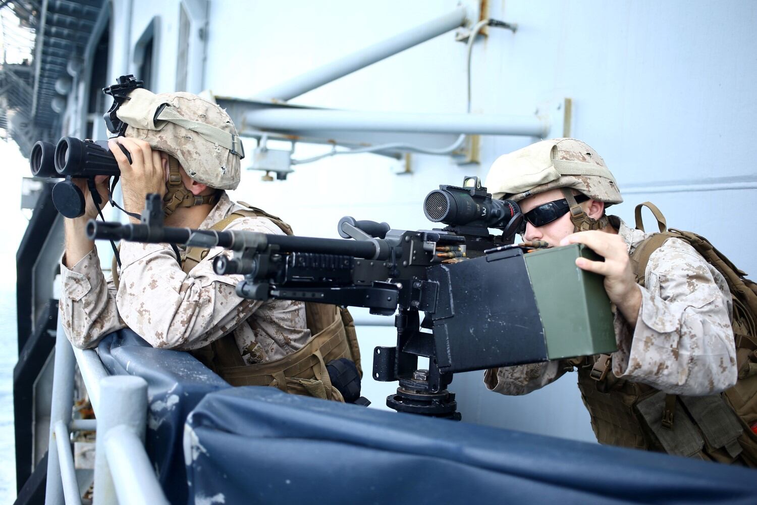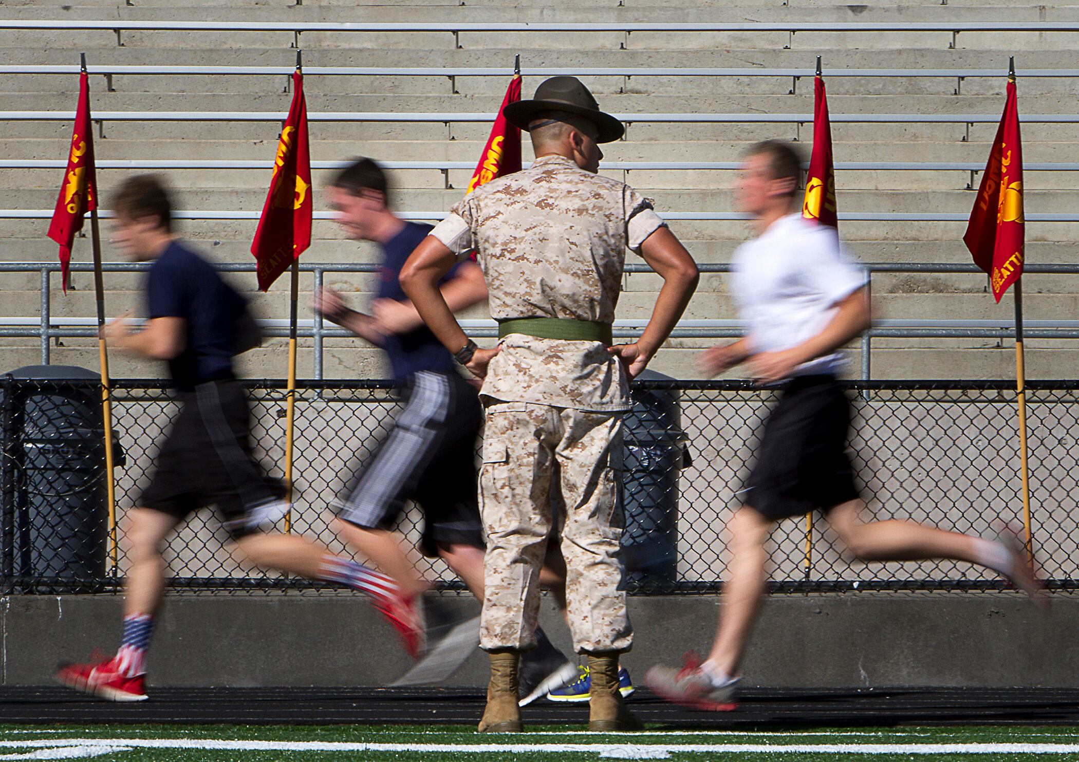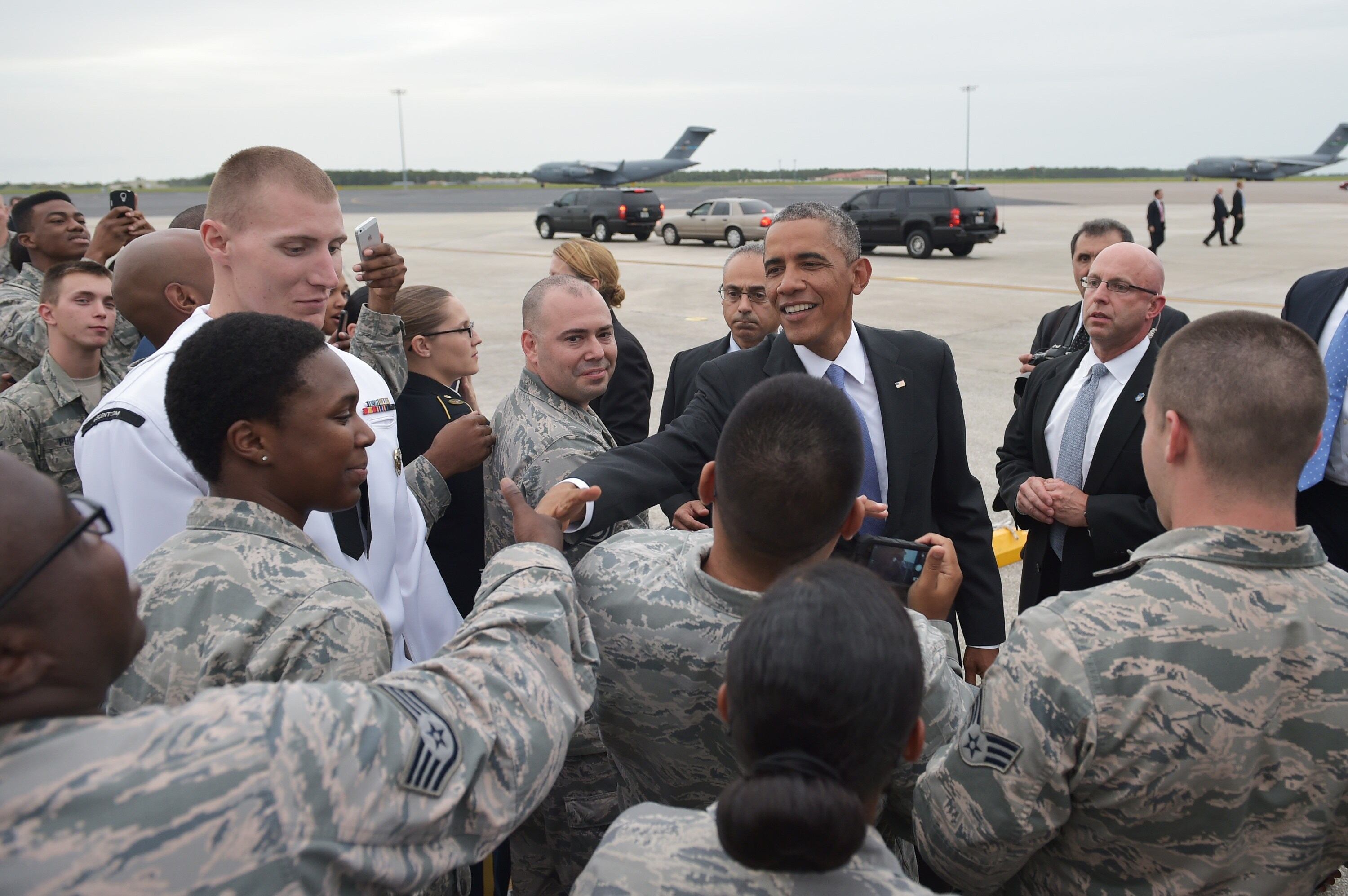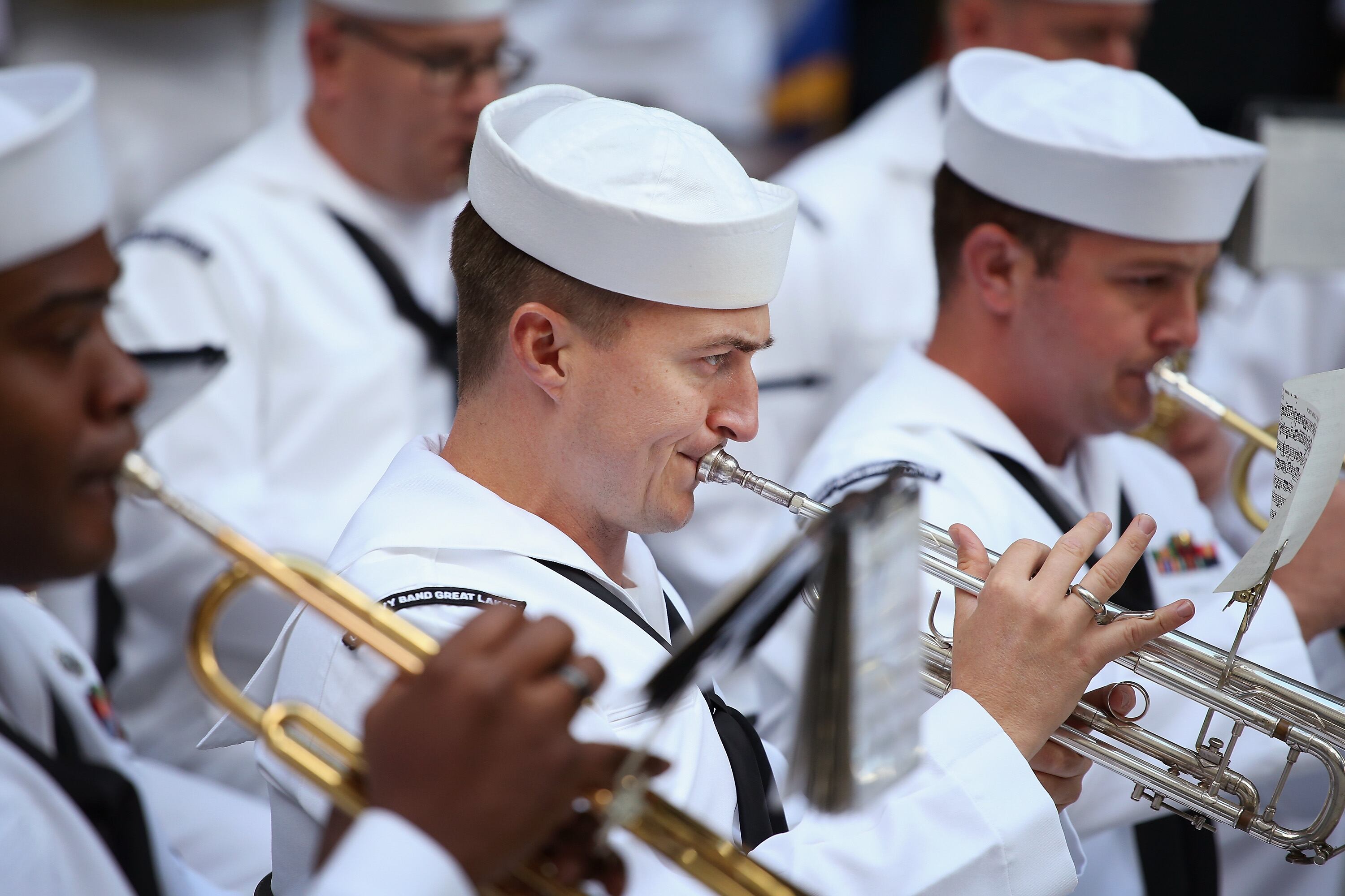 Chief Cryptologic Technician-Collection Michael J. Graham receives his chief petty officer combination cover during U.S. Strategic Command’s (USSTRATCOM) Fiscal Year 2015 Chief Petty Officer Pinning Ceremony. At the ceremony, Graham and Chief Cryptologic Technician-Collection Patrick J. Sherlock became the newest chief petty officers assigned to USSTRATCOM. Advancement to chief petty officer is the most significant promotion within the enlisted naval rates, and carries unique responsibilities and privileges. USSTRATCOM is one of nine DoD unified combatant commands and is charged with strategic deterrence, space operations, cyberspace operations, joint electronic warfare, global strike, missile defense, intelligence, surveillance and reconnaissance, combating weapons of mass destruction, and analysis and targeting. (U.S. Navy photo by Mass Communication Specialist 1st Class Byron C. Linder/Released)The U.S. Coast Guard barque Eagle departs Baltimore's Inner Harbor on Tuesday, Sept 16, 2014, during the closing of Star-Spangled Spectacular activities. The Eagle was one of more than 30 naval vessels and tall ships that took part in the Star-Spangled Spectacular. (U.S. Coast Guard photograph by Petty Officer 3rd Class Charlotte Fritts)Sgt. Jonathon Lopez, a drill instructor with Charlie Company, 1st Recruit Training Battalion, Marine Corps Recruit Depot San Diego, observes poolees as they perform an initial strength test during Recruiting Station Seattle’s annual west side pool function at Foster High School in Tukwila, Wash., Sept. 13, 2014. During the event, Washington-based recruiters teamed with drill instructors to physically and mentally prepare enlistees for boot camp. The enlistees, part of the Marine Corps delayed entry program, are awaiting their ship dates. Lopez, 28, is from San Juan, Puerto Rico. (U.S. Marine Corps photo by Sgt. Reece Lodder)U.S. Coast Guardsmen assigned to Maritime Safety and Security Team (MSST) Boston conduct security sweeps of New York Harbor Sept. 11, 2014. MSST Boston helped MSST New York provide a heightened security presence on the 13th anniversary of the Sept. 11, 2001, attacks. Terrorists hijacked four passenger aircraft Sept. 11, 2001. Two of the aircraft were deliberately crashed into the World Trade Center in New York; one was crashed into the Pentagon; the fourth crashed near Shanksville, Pa. Nearly 3,000 people died in the attacks. (DoD photo by Petty Officer 3rd Class Frank J. Iannazzo-Simmons, U.S. Coast Guard/Released)Lance Cpl. Paul Kaminsky and Lance Cpl. Colton Welker, machine gunners with Golf Company, Battalion Landing Team 2nd Battalion, 1st Marines, 11th Marine Expeditionary Unit, search for potential threats as part of small craft action team drill aboard the USS Makin Island (LHD 8), Sept. 15. The 11th MEU is deployed with the Makin Island Amphibious Ready Group as a theater reserve and crisis response force throughout U.S. Central Command and the U.S 5th fleet area of responsibility. (U.S. Marine Corps photo by Lance Cpl. Evan R. White/ RELEASED)CHICAGO, IL - SEPTEMBER 16: FN Yngrid Castaneda (L), who emigrated from Peru, joins SN Carlos Estrella (C), who emigrated from Mexico and Shireen Shiba (2nd from R), who emigrated from Iraq, in taking the oath of citizenship during a naturalization ceremony in Daley Plaza on September 16, 2014 in Chicago, Castaneda and Estrella recently graduated from U.S. Navy basic training. Seventy people from 25 countries were awarded their U.S. citizenship at the Citizenship Day ceremony. (Photo by Scott Olson/Getty Images)CHICAGO, IL - SEPTEMBER 16: Members of the U.S. Navy Band Great Lakes perform during a naturalization ceremony in Daley Plaza on September 16, 2014 in Chicago, Illinois. Seventy people from 25 countries were awarded their U.S. citizenship at the Citizenship Day ceremony. (Photo by Scott Olson/Getty Images)US President Barack Obama greets military personnel upon arrival at MacDill Air Force Base in Tampa, Florida on September 16, 2014. AFP PHOTO/Mandel NGANMANDEL NGAN/AFP/Getty Images140914-N-WP746-667