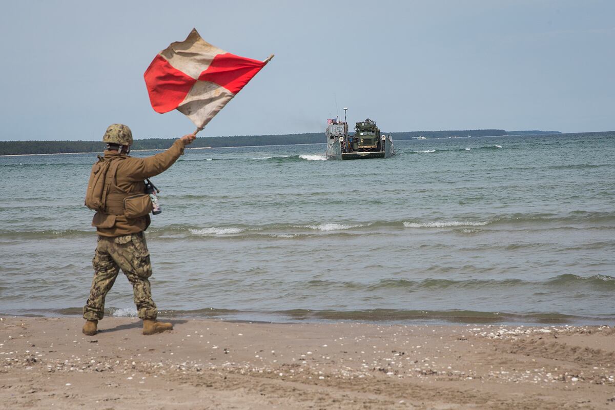 Soldiers conduct a night live-fire iteration of a Combined Arms Live Fire Exercise during Exercise Decisive Strike 2019 at the Training Support Centre, Krivolak, North Macedonia, June 11, 2019. (Staff Sgt. Frances Ariele Tejada/Army)Chief Master Sgt. of the Air Force Kaleth O. Wright poses for a photo with an airman after an all call at Baker Field House on Eielson Air Force Base, Alaska, June 12, 2019. (Senior Airman Kahdija Slaughter/Air Force)Cpl. Dustin Murphy, left, and Gunnery Sgt. Christopher Bird, right, conduct military free fall operations June 6, 2019, on Ie Shima, Okinawa, Japan. (Cpl. Ryan Harvey/Marine Corps)Capt. Tommy Beau Locke flies the first F-35C aircraft attached to the Black Knights of Marine Fighter Attack Squadron 314 over Naval Air Station Lemoore, Calif., in formation with an F/A-18A flown by Lt. Col. Cedar Hinton while "passing the lead" as part of the F/A-18 Sundown with the Black Knights on June 5, 2019. (Lt. Cmdr. Darin Russell/Navy)Marines prepare to conduct their battle sight zero at Range 500 during Integrated Training Exercise 4-19 at Marine Corps Air Ground Combat Center, Twentynine Palms, Calif., June 9, 2019. (Lance Cpl. Preston L. Morris/Marine Corps)Spc. Scott Myers, lower left, re-enlists during rock face rappel training at Fort Drum, N.Y., June 13, 2019.Emergency manager airmen search for hazards in a railway tunnel during Exercise Global Dragon 2019, in Perry, Ga., June 6, 2019. (Staff Sgt. Matthew Matlock/Air National Guard)A sailor signals a U.S. Navy landing craft, utility on June 12, 2019, to offload tactical vehicles during Exercise Baltic Operations 2019 in Kallaste, Estonia. (Cpl. Abrey Liggins/Marine Corps)Army 2nd Lt. Caitlyn Simpson prepares her platoon for a training mission from inside a tank at Fort Irwin, Calif., May 28. 2019. (Cpl. Alisha Grezlik/Army)Marines stand behind a wooden shield during an urban-breaching range on Exercise Fuji Viper, at Combined Arms Training Center, Camp Fuji, June 11, 2019. (Lance Cpl. Joshua Sechser/Marine Corps)