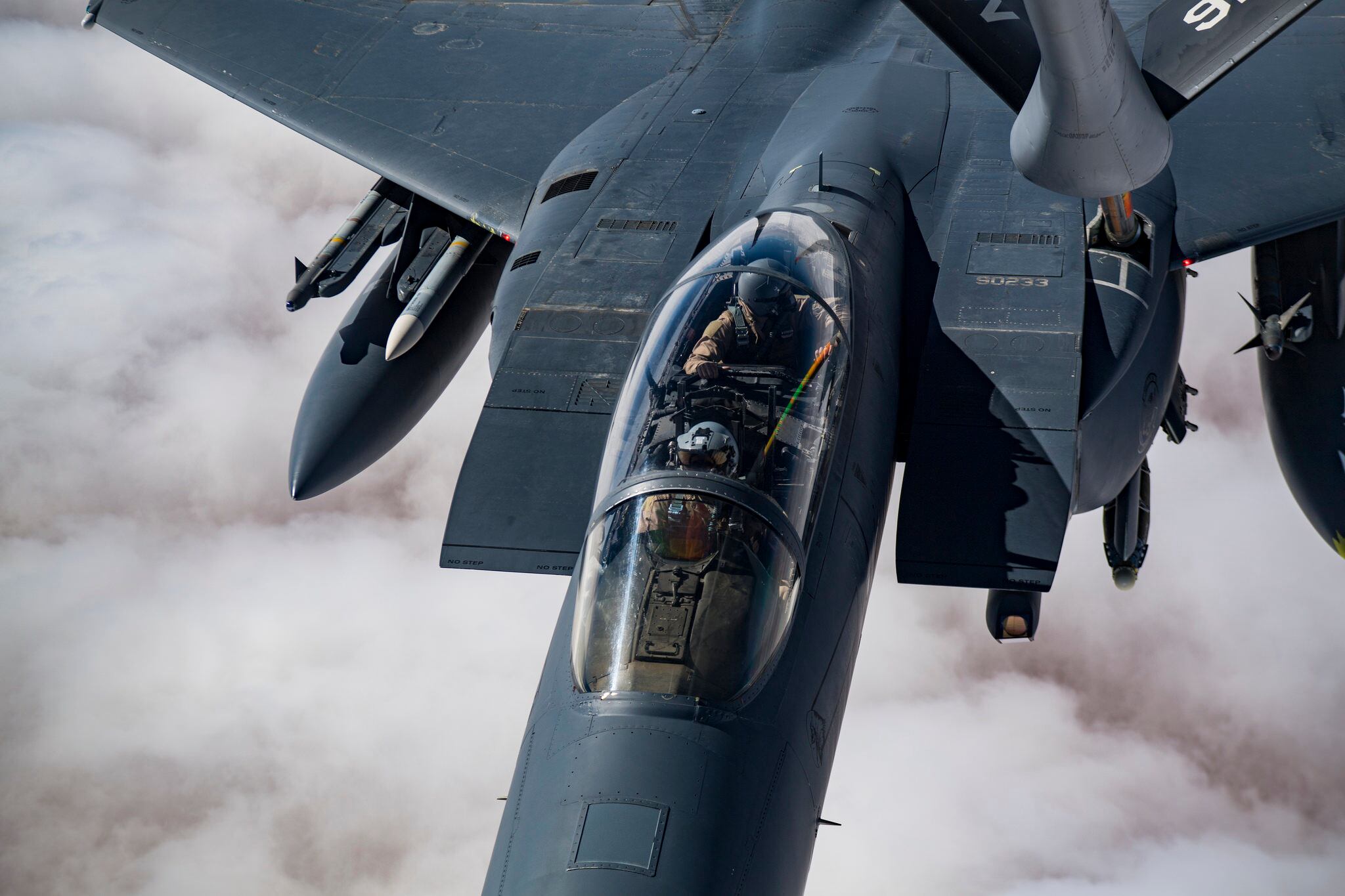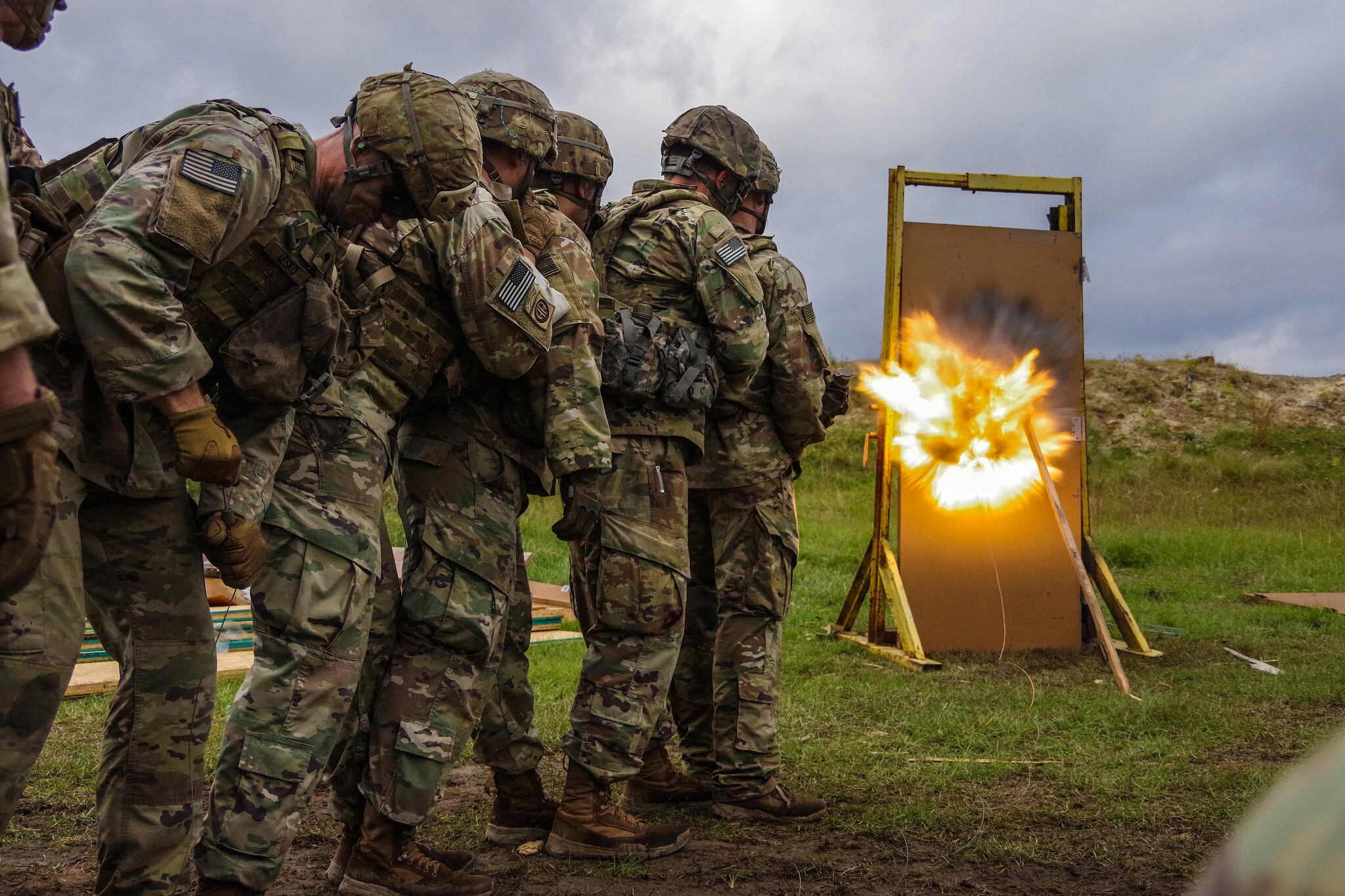 Recruits with Hotel Company, 2nd Recruit Training Battalion, crawl during a combat conditioning exercise at Marine Corps Recruit Depot San Diego on Nov. 14, 2018. (Marine Corps)Paratroopers from Company A, 307th Airborne Engineer Battalion, 3rd Brigade Combat Team, 82nd Airborne Division observe as a door-breaching charge they emplaced detonates Nov. 6, 2018, on Fort Bragg, N.C. (Army)U.S. Air Force Senior Airman Jamar Jackson, a United States Air Force Honor Guard ceremonial guardsman, marches in the Veterans Day Parade in New York on Nov. 11, 2018. The Honor Guard performed in the parade to honor veterans and to inspire, recruit and retain future airmen. (Airman 1st Class Michael S. Murphy/Air Force)An MH-60R Sea Hawk helicopter takes off from the flight deck of the Ticonderoga-class guided-missile cruiser USS Chancellorsville (CG 62) on Nov. 14, 2018, during flight quarters in the Philippine Sea. (MC2 Sarah Myers/Navy)German soldiers board a U.S. Marine Corps CH-53E Super Stallion helicopter during cold-weather training in support of Exercise Trident Juncture 18 in Dalsbygda, Norway, Nov. 1, 2018. (Cpl. David Delgadillo/Marine Corps)A nuclear advanced designated marksman from the 341st Security Support Squadron Tactical Response Force assists in a launch facility recapture exercise from a distance in support of Global Thunder 19 on Oct. 30, 2018, at Malmstrom Air Force Base, Mont. (Beau Wade/Air Force)A U.S. Army combat medic assigned to the 82nd Airborne Division, Fort Bragg, N.C., readies his equipment Nov. 6, 2018, before embarking on his final evaluation lane while competing for the Expert Field Medical Badge. (Sgt. Dustin Biven/Army)A U.S. Air Force F-15E Strike Eagle receives in-flight fuel from a KC-135 Stratotanker on Oct. 25, 2018, while flying over Iraq in support of Operation Inherent Resolve. (Staff Sgt. Clayton Cupit/Air Force)U.S. Army Sgt. Mauricio Caceres and Sgt. Cory Sweetman descend from an aircraft during an exercise at Atlantic City International Airport, N.J., Nov. 7, 2018. Caceres and Sweetman are with the 21st Weapons of Mass Destruction-Civil Support Team (21st WMD-CST), New Jersey National Guard. (Master Sgt. Matt Hecht/Air National Guard)The Nimitz-class aircraft carrier USS John C. Stennis (CVN 74) transits the Pacific Ocean on Nov. 9, 2018. (MC3 Connor D. Loessin/Navy)