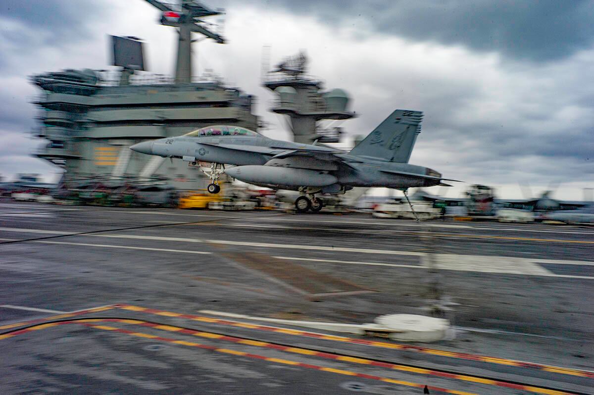 Norfolk Va. - The aircraft carrier Abraham Lincoln passes Thimble Shoals Lighthouse, Jan. 25, on the way to the Atlantic Ocean for her Composite Unit Training Exercise (Mark D. Faram/staff)Airman Aorian Johnson, plane captain for a Super Hornet from Strike Fighter Squadron 25 awaits the pilot during the carrier Abraham Lincoln's Composite Unit Training Exercise (Mark D. Faram/Staff)Flight deck crews position aircraft at the bow catapults for launch during the carrier Abraham Lincoln's Composite Unit Training Exercise (Mark D. Faram/Staff)A Super Hornet launches off the angle deck of the aircraft carrier Abraham Lincoln during her Composite Unit Training Exercise (Mark D. Faram/Staff)The reflection of the aircraft carrier Abraham Lincoln is caught in an E-2C Hawkeye's cockpit window. (Mark D. Faram/Staff)A Super Hornet catches the wire on board the aircraft carrier Abraham Lincoln during her Composite Unit Training Exercise (Mark D. Faram/Staff)A Super Hornet fighter is waved off from landing on board the aircraft carrier Abraham Lincoln during her Composite Unit Training Exercise (Mark D. Faram/Staff)Boatswain's Mate Seaman Samuel Rodriguez, right, and Boatswain's Mate Seaman Andrea Savcedo man the helm of the aircraft carrier Abraham Lincoln during its Composite Unit Training Exercise. (Mark D. Faram/Staff)A Super Hornet is waved off from landing on board the aircraft carrier Abraham Lincoln during her Composite Unit Training Exercise (Mark D. Faram/Staff)Flight deck crews work on parked Super Hornets during the carrier Abraham Lincoln's Composite Unit Training Exercise (Mark D. Faram/Staff)A flight deck crewman checks the launching gear of a Super Hornet fighter in preparation for a catapult launch. (Mark D. Faram/staff)A Sikorsky SH-60 Seahawk helicopter lands after a stint standing guard off the the aircraft carrier Abraham Lincoln during her Composite Unit Training Exercise (Mark D. Faram/Staff)