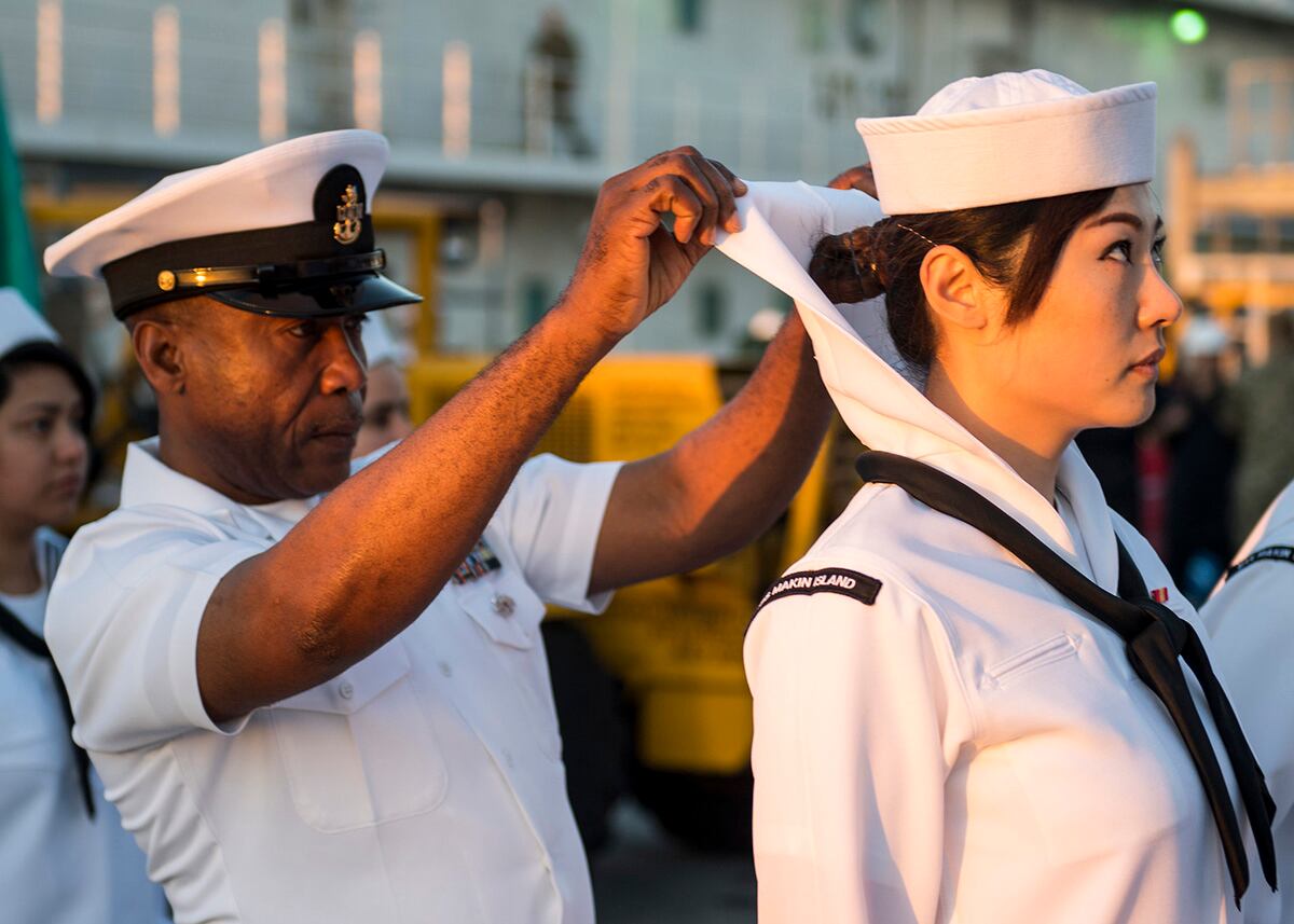 A participant of the 7th annual Rugged Terrain Obstacle Run low crawls through mud April 6, 2019, in the Grafenwoehr Training Area, Germany. (Sgt. Christopher Stewart/Army)Staff Sgt. Lindsay Zaccardi and military working dog Joan dig into their pack for medical supplies on March 26, 2019, during a mission readiness exercise at Camp Guernsey, Wyo. (1st Lt. Faith Brodkorb/Air Force)Senior Chief Aviation Support Equipment Technician Augustine Ilomuanya conducts a dress white uniform inspection on March 22, 2019, aboard the amphibious assault ship USS Makin Island (LHD 8). (Mass Communication Specialist 2nd Class Colby A. Mothershead//Navy)U.S. Marines and sailors with the 22nd Marine Expeditionary Unit board an MV-22 Osprey on April 12, 2019, after completing embassy reinforcement training during an exercise at Camp Beuhring, Kuwait. (Sgt. Aaron Henson/Marine Corps)Soldiers conduct platoon live-fire training April 3, 2019, at the Pohakuloa Training Area, Hawaii. (Spc. Geoff Cooper/Army)A U.S. Air Force F-15E Strike Eagle approaches a KC-135 Stratotanker to receive fuel over Scotland during exercise Joint Warrior 19-1 on April 4, 2019. (Tech. Sgt. Emerson Nuñez/Air Force)Sailors stand at parade rest during a change of command ceremony April 13, 2019, aboard the amphibious assaut ship USS Wasp (LHD 1) at Subic Bay, Philippines. (Mass Communication Specialist 3rd Class Benjamin F. Davella III/Navy)Green Berets assigned to 3rd Special Forces Group (Airborne) fire the M2 .50 caliber machine gun on April 2, 2019, at Fort Bragg, N.C. (Sgt. Steven Lewis/Army)Soldiers from the 101st Airborne Division prepare for a live-fire training exercise, March 31, 2019, near Tan Tan, Morocco, as part of exercise African Lion 2019. (Tech. Sgt. John Winn/Air National Guard)Army AH-64 Apache attack helicopter sits on the flight line April 13, 2019, while a shooting star falls in the sky on FARP 17, Pōhakuloa Training Area, Hawaii. (Capt. Keith Kraker/Army)Marines prepare to conduct a long range swim starting at Marine Corps Base Hawaii to Marine Corps Training Area Bellows on April 5, 2019. The unit completed a three mile swim to improve their lethality and readiness as a mechanized unit prior to upcoming training events. (Sgt. Jesus Sepulveda Torres/Marine Corps)Seaman Devin Jenkins conducts surf observations April 9, 2019, after departing the amphibious assault ship USS Wasp (LHD 1) during Exercise Balikatan 2019 at Naval Station Leovigildo Gantioqui, Philippines. (Chief Aviation Electronics Technician Eric Setterfield/Navy))
