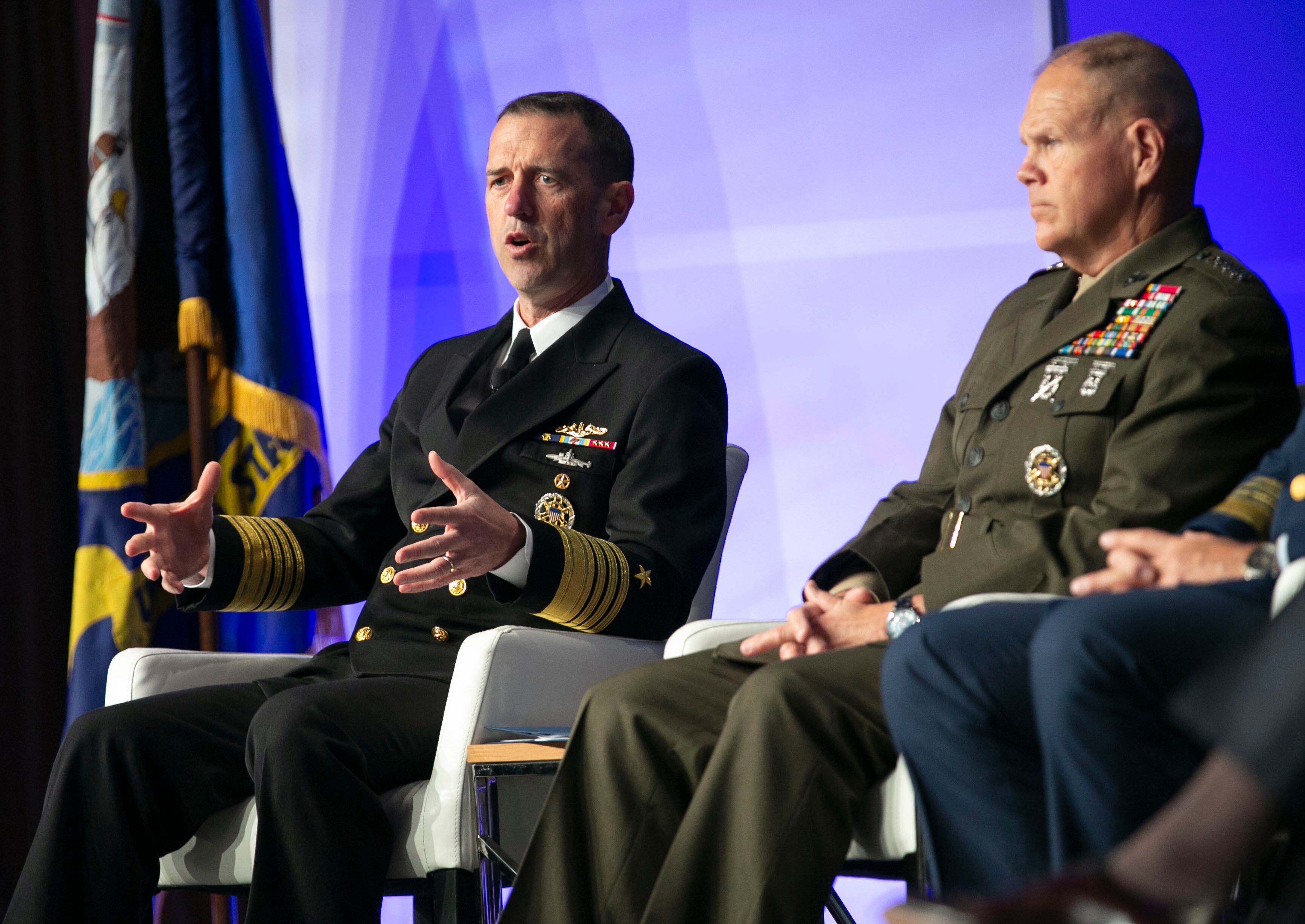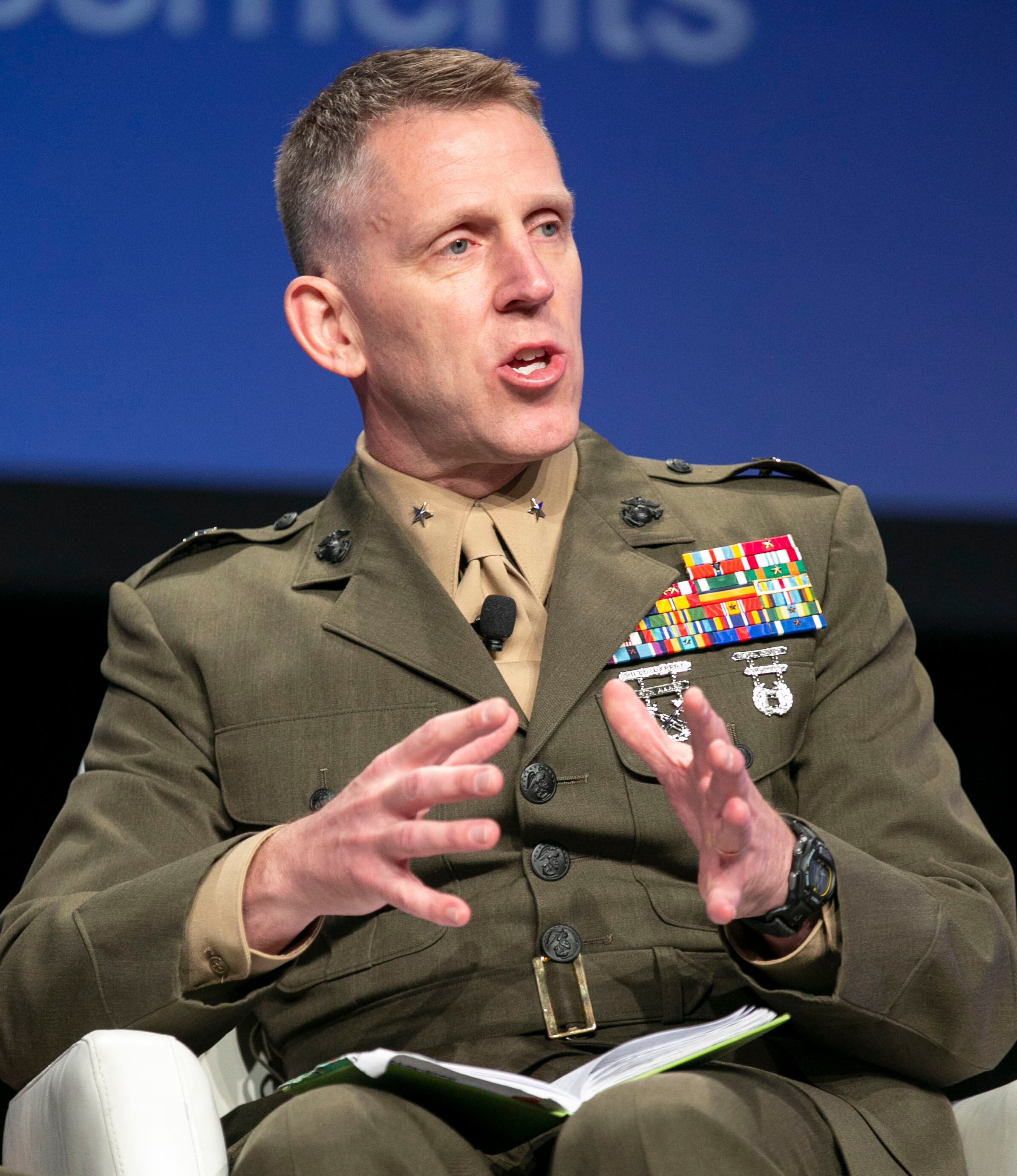 Jesse Hales, right, from L3 Technologies, demonstrates an Integrated Bridge System to Nicole Herndon, left, from ARTPC during the Sea Air Space Exposition at the Gaylord National Convention Center in National Harbor, MD on May 7, 2019. (Alan Lessig/Staff)Brig. Gen. Lorna Mahlock speaks during space communications panel during the Sea Air Space Exposition at the Gaylord National Convention Center in National Harbor, MD on May 6, 2019. (Alan Lessig/Staff)Attendees take a look at a model of CVN 79 John F. Kennedy at the Huntington Ingals Industries booth during the Sea Air Space Exposition at the Gaylord National Convention Center in National Harbor, MD on May 6, 2019. (Alan Lessig/Staff)Adm. John Richardson, Chief of Naval Operations, speaks with Gen. Robert Neller, right, Commandant of the Marine Corps, speaks during the Sea Service Chiefs-Leadership panel during the Sea Air Space Exposition at the Gaylord National Convention Center in National Harbor, MD on May 6, 2019. (Alan Lessig/Staff)Teresa Rodgers tries augmented reality goggles with Joe Sedlecek, right, while visiting the Bell booth during the Sea Air Space Exposition at the Gaylord National Convention Center in National Harbor, MD on May 6, 2019. (Alan Lessig/Staff)The Raytheon AN/SPY 6(V)1 Radar on display outside during the Sea Air Space Exposition at the Gaylord National Convention Center in National Harbor, MD on May 6, 2019. (Alan Lessig/Staff)Air Force Gen. Terrence O'Shaughnessy, NorthCom Commander, speaks during during Arctic strategies panel during the Sea Air Space Exposition at the Gaylord National Convention Center in National Harbor, MD on May 6, 2019. (Alan Lessig/Staff)Pierre-Olivier Nouges, left, and Bill Watson, right, take a look at the Light Marine Air Defense Integrated System, or LMADIS mounted on a MRZR all-terrain vehicle on the exhibit floor during the Sea Air Space Exposition at the Gaylord National Convention Center in National Harbor, MD on May 7, 2019. (Alan Lessig/Staff)Coast Guard Vice Adm. Daniel Abel speaks during during Arctic Strategies panel during the Sea Air Space Exposition at the Gaylord National Convention Center in National Harbor, MD on May 6, 2019. (Alan Lessig/Staff)Marine Brig. Gen. Christian Wortman speaks on Sea Service Update panel during the Sea Air Space Exposition at the Galylord National Convention Center in National Harbor, MD on May 7, 2019. (Alan Lessig/Staff)Raynel Kock, left, Rick Allard, center, and Neil Barton, right, all from Naval Research Laboratory, look at the Coupled Ocean-Atmosphere Mesoscale Prediction System (COAMPS), a globe that provides detailed high resolution forecasts of the battle space environment for local regional and three-dimensional atmospheric and surface wave conditions during the Sea Air Space Exposition at the Gaylord National Convention Center in National Harbor, MD on May 6, 2019. (Alan Lessig/Staff)Martin Cadirola, from Ecotronics, flies the F-35 Lightning II cockpit demonstrator while being instructed by Melissa Buffa, at the Lockheed Martin Booth during the Sea Air Space Exposition at the Gaylord National Convention Center in National Harbor, MD on May 7, 2019. (Alan Lessig/Staff)Chandler Hirsch, left, from Marine Corps Warfighting Laboratory, talks with Adam Perone, from infinite Electronics, about the marine Air Launch Fast Reconnaissance System during the Sea Air Space Exposition at the Gaylord National Convention Center in National Harbor, MD on May 7, 2019. (Alan Lessig/Staff)Tours of the Common Unmanned Surface Vehicle (CUSV) on the Potomac River during the Sea Air Space Exposition at the Gaylord National Convention Center in National Harbor, MD on May 7, 2019. (Alan Lessig/Staff)Rear Adm. Christian "Boris" Becker, speaks during space communications panel during the Sea Air Space Exposition at the Gaylord National Convention Center in National Harbor, MD on May 6, 2019. (Alan Lessig/Staff)Attendees on the show floor at the Sea Air Space Exposition at the Gaylord National Convention Center in National Harbor, MD on May 7, 2019. (Alan Lessig/Staff)Rear Adm. John Nowell speaks on Sea Service Update panel during the Sea Air Space Exposition at the Gaylord National Convention Center in National Harbor, MD on May 7, 2019. (Alan Lessig/Staff)