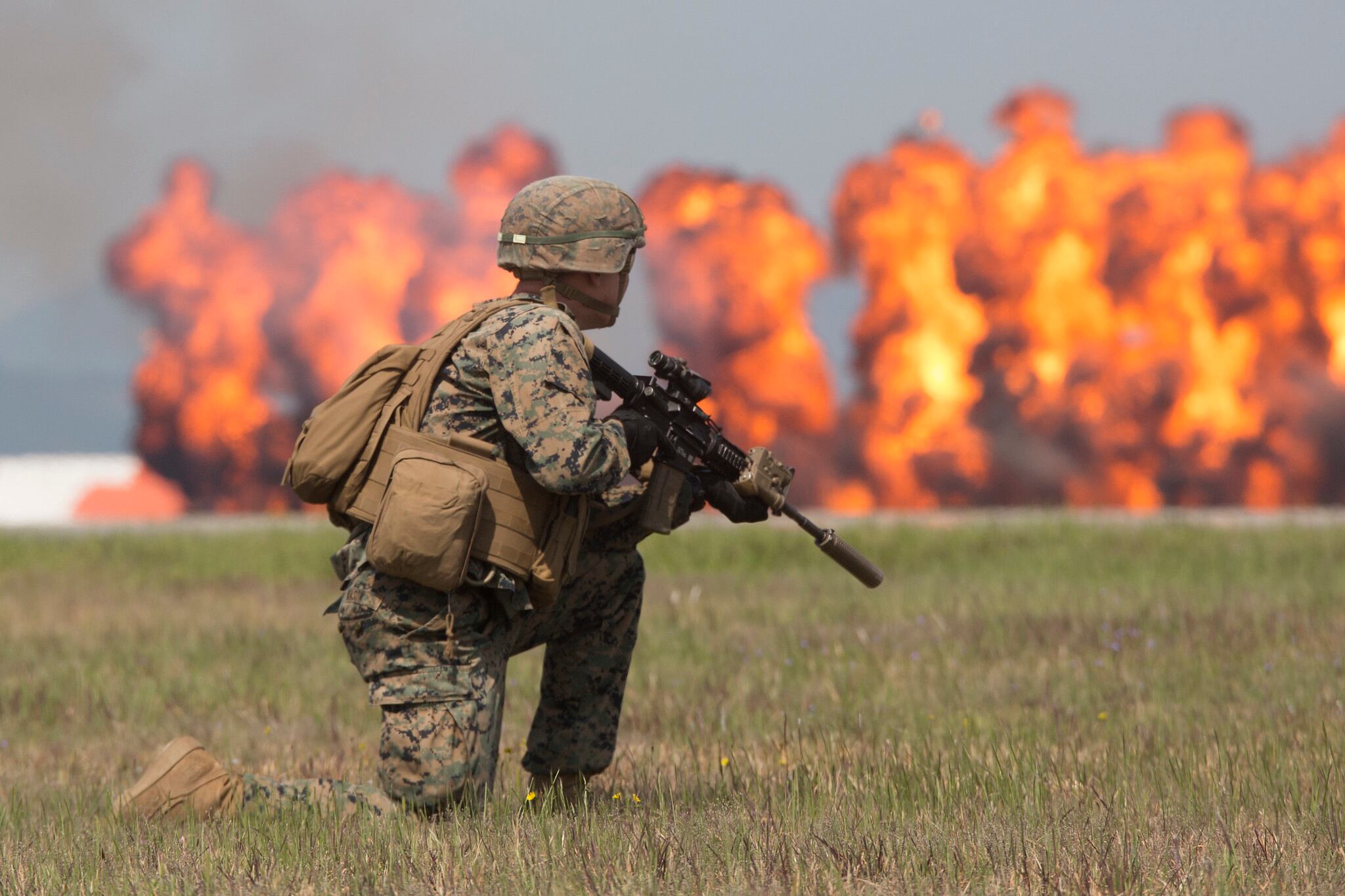 A Marine Air-Ground Task Force demonstration is conducted May 5, 2019, during the 43rd Japan Maritime Self-Defense Force Marine Corps Air Station Iwakuni Friendship Day at MCAS Iwakuni, Japan. (Lance Cpl. Harrison Rakhshani/Marine Corps)The Military Sealift Command fast expeditionary transport ship USNS Fall River (T-EPF 4) transits the Java Sea on May 5, 2019. (Mass Communication Specialist 2nd Class Nicholas Burgains/Navy)Army Spcs. Eduardo Siordia and Keith Zimmerman approach the midpoint of a 12-mile ruck march during the Best Warrior competition at Fort Carson, Colo., April 26, 2019. (Sgt. Micah Merrill/Army)Marine Corps Sgt. Troy Mole fires a shoulder-fired Javelin missile during Exercise Bougainville II at Pohakuloa Training Area, Hawaii, May 15, 2019. (Lance Cpl. Jacob Wilson/Marine Corps)U.S. Air Force F-22 Raptors fly over Alaska during Northern Edge, May 14, 2019, at Joint Base Elmendorf-Richardson. (Master Sgt. Nathan Lipscomb/Air Force)Army paratroopers react to contact while participating in Exercise Immediate Response at Pocek Training Area, Slovenia, May 15, 2019. (Army)Soldiers test their knowledge of Chemical, Biological, Radiological and Nuclear (CBRN) at the CBRN lane ran by 25th Sustainment Brigade CBRN specialist during Day 1 of the 25th ID NCO/Soldier of the Year five day competition held 12-16 May 2019, Schofield Baracks, Hawaii. (Sgt. Sarah D. Williams/Army)Reconnaissance Marines roll backward into the water during training at Camp Hansen, Okinawa, Japan, May 13, 2019. (Lance Cpl. Cameron E. Parks/Marine Corps)An F-16CM Fighting Falcon prepares to refuel with a KC-135 Stratotanker during a routine training exercise off the coast of Japan, May 8, 2019. (Airman 1st Class Matthew Seefeldt/Air Force)The Nimitz-class aircraft carrier USS Abraham Lincoln (CVN 72) transits the Suez Canal on May 9, 2019. (Mass Communication Specialist Seaman Dan Snow//Navy)