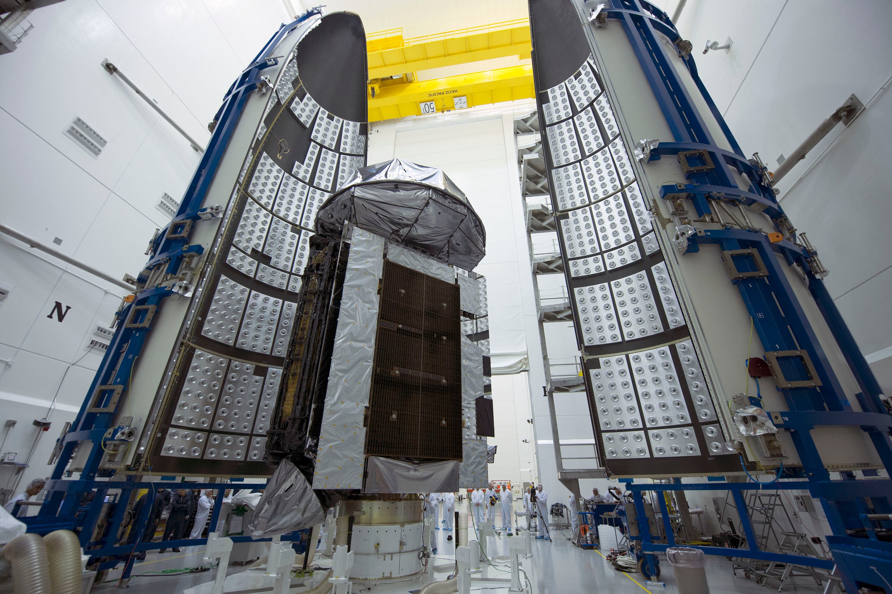 MUOS-4, manufactured by Lockheed Martin in its Sunnyvale, California, facility, was encapsulated in its protective launch vehicle at Astrotech Space Operations in Florida on August 10. It remains at Cape Canaveral Air Force Station in anticipation of its launch aboard a United Launch Alliance Atlas V rocket.