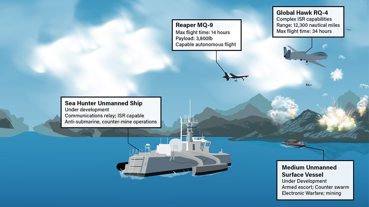 “A purely unmanned system can be very small, can focus on power, range and duration and there are a lot of packages you can put on it — sensors, video camera, weapons systems,” said Dakota Wood, a retired Marine lieutenant colonel and now senior research fellow at The Heritage Foundation in Washington, D.C.