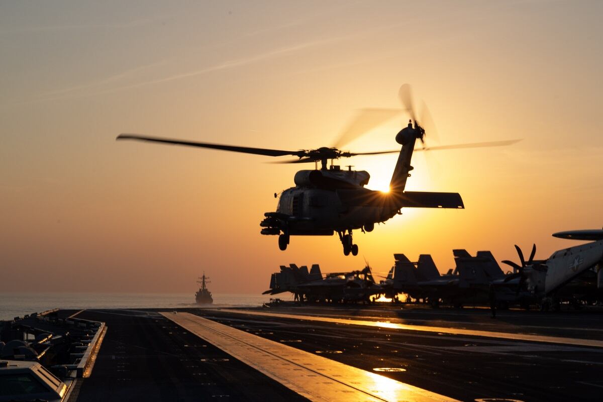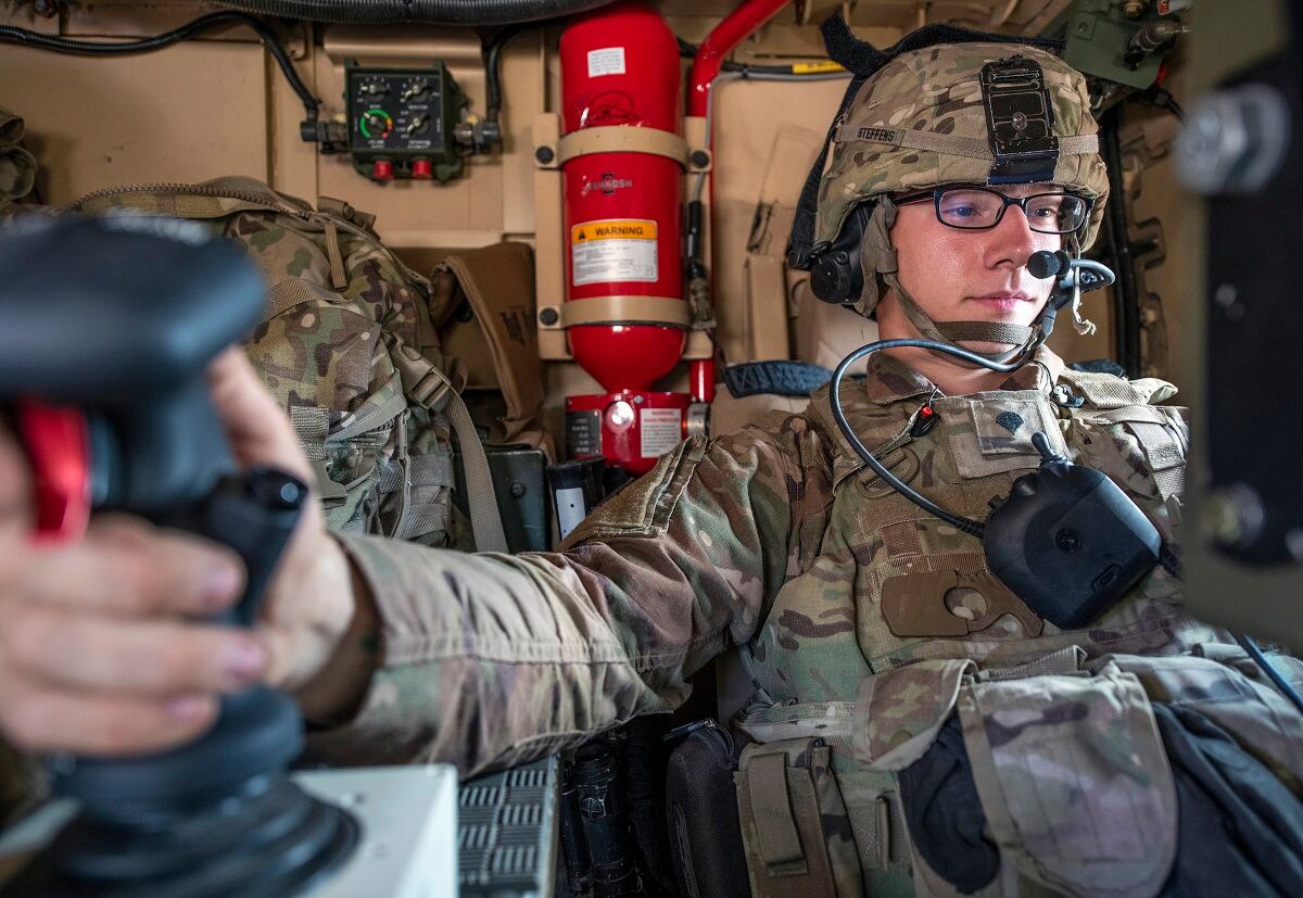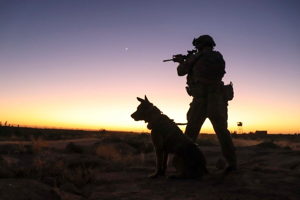 Senior Airman Cullen Thomas, 824th Expeditionary Base Defense Squadron military working dog handler, and his military working dog Klepa perform a perimeter check at Nigérien Air Base 201, Niger, Dec. 9, 2018. (Staff Sgt. Daniel Asselta/Air Force)Airman 1st Class Ashley Libby, a 99th Medical Operations Squadron aerospace medical technician at Nellis Air Force Base, Nev., raises her arms to keep the American flag off the ground during the 2018 Las Vegas Bowl opening ceremony at Sam Boyd Stadium in Las Vegas, Dec. 15, 2018. The half-ton flag required more than 200 airmen to carry it. (Senior Airman Andrew D. Sarver/Air Force)A Marine tests the fit of his M50 Joint Service General Purpose Mask outside the gas chamber at Camp Hansen, Okinawa, Japan, Dec. 19, 2018. (Lance Cpl. Andrew R. Bray/Marine Corps)Members of Battery C, 1st Battalion, 9th Field Artillery Regiment fire a salute Dec. 21, 2018, in honor of the Georgia National Guard's 48th Infantry Brigade Combat Team, which held a casing ceremony at Fort Stewart, Ga. This is the fourth combat deployment of the 48th IBCT since Sept. 11, 2001. (Maj. William Carraway/Army)An MH-60R Sea Hawk helicopter takes off from the flight deck of the aircraft carrier USS John C. Stennis (CVN 74) during a transit through the Strait of Hormuz on Dec. 21, 2018. (MC3 Grant G. Grady/Navy)Army Spc. Kaleb Steffens, gunner, Delta Company, 4th Platoon, 1st Battalion 141st Infantry Regiment, Task Force Alamo, Texas National Guard, deployed to Combined Joint Task Force-Horn of Africa, Djibouti, fires a .50-caliber Common Remotely Operated Weapon Station on top of a Mine-Resistant Ambush-Protected vehicle during training at a military range in Djibouti, Dec. 15, 2018. (Tech. Sgt. Shawn Nickel/Air Force)MV-22 Ospreys prepare to launch from the flight deck of the Wasp-class amphibious assault ship USS Kearsarge (LHD 3) on Dec. 23, 2018, during night flight operations in the Atlantic. (MC1 Mike DiMestico/Navy)Marines and sailors with Special Purpose Marine Air-Ground Task Force stand at attention before Commandant of the Marine Corps Gen. Robert B. Neller speaks in Sigonella, Italy, Dec. 25, 2018. (Sgt. Olivia G. Ortiz/Marine Corps)A B-1B Lancer and a KC-135 Stratotanker conduct aerial refueling over the continental United States on Dec. 10, 2018. (Staff Sgt. Joshua Williams/Air Force)Hull Maintenance Technician 3rd Class Sikeston Bingham stands watch on the flight deck aboard the Nimitz-class aircraft carrier USS Harry S. Truman (CVN 75) on Dec. 20, 2018, at Naval Station Norfolk. (MC3 Joseph A.D. Phillips/Navy)